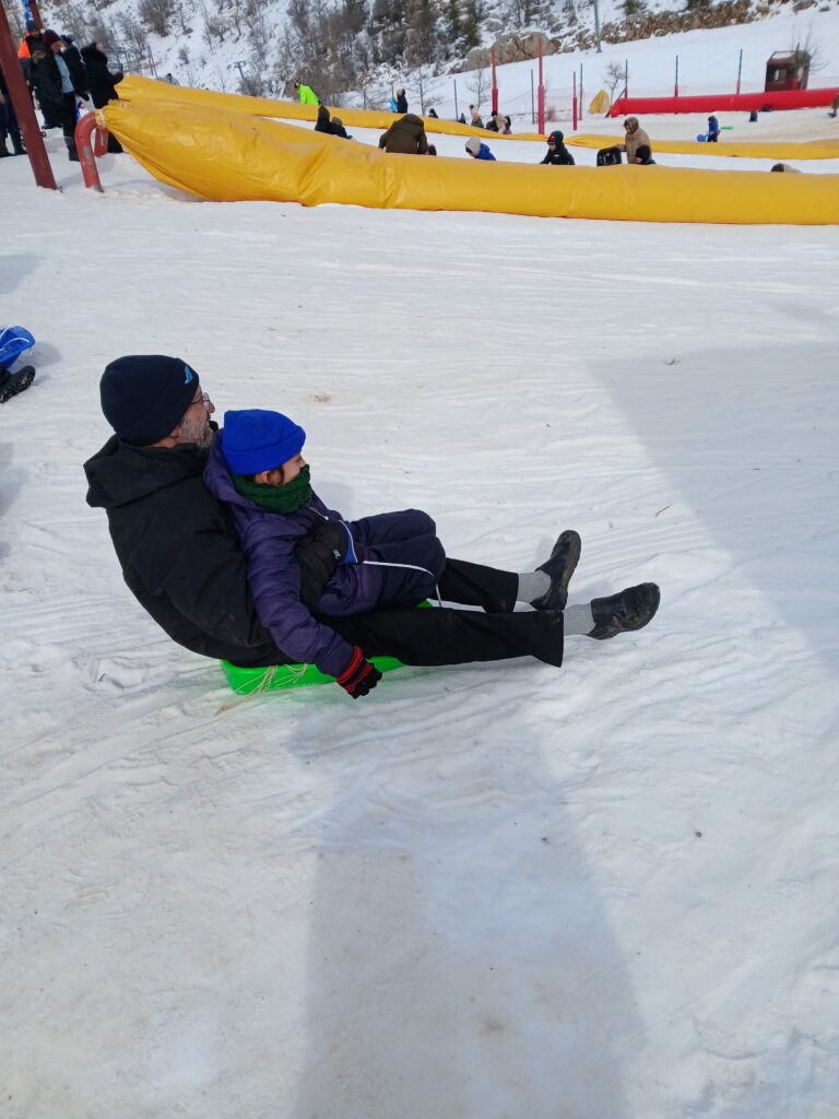 We had a scare soon after getting there (more about that in a different post), but after taking a break for an extended lunch and to warm up, everyone was ready to get back on the sledding slopes. We bought sleds for everyone at a stand on the side of the road on the way there and the kids were eager to try them out.