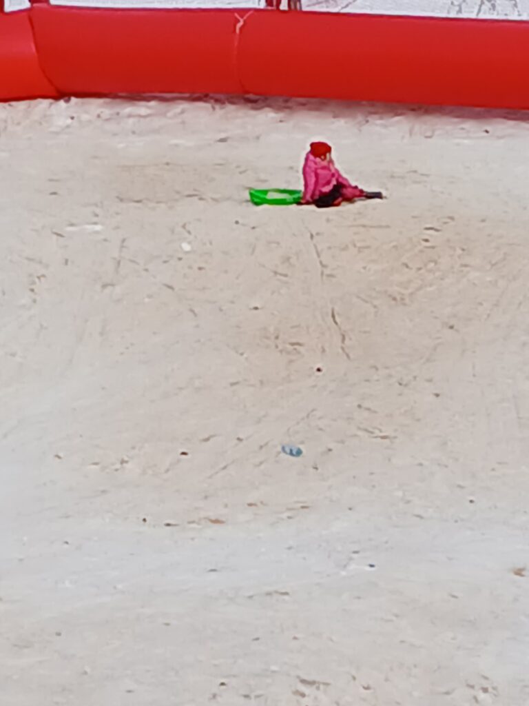 We alternated sledding with inside breaks. The last time we went back out it was already 3 pm, and most people were heading home. So we had the slopes to ourselves.