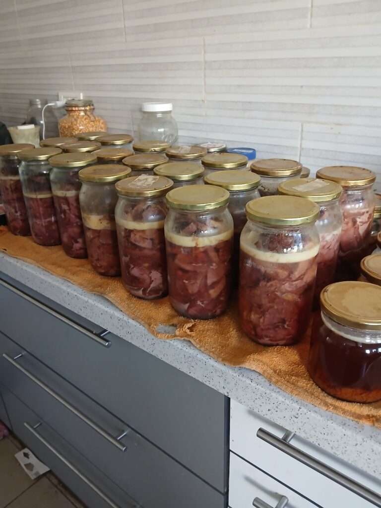 He showed me the the empty glass jar that held the food he’d taken for lunch that day – meat I canned in 2022. (If you’re wondering about the shelf life, it’s fine to use home canned meats for up to five years after they were processed.) Do you know how much the meat that I canned then cost per kilo?